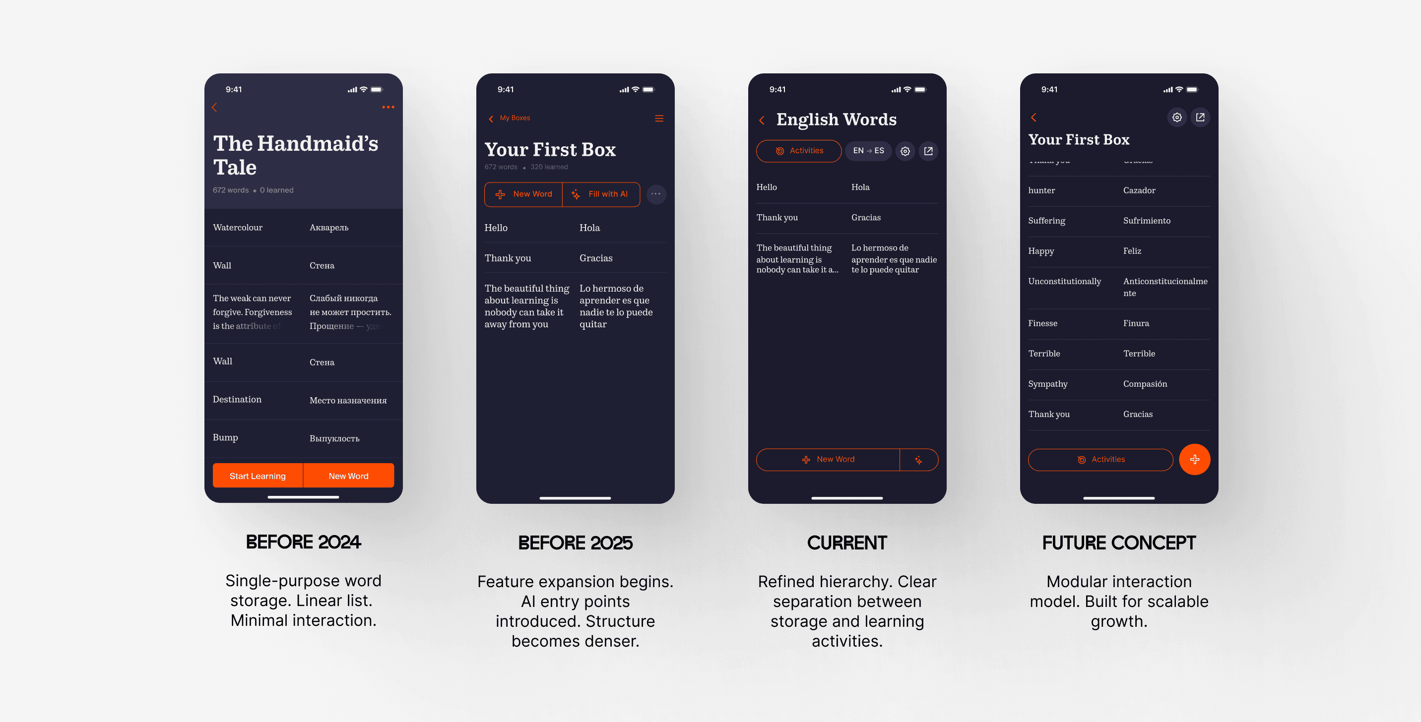 Working on Wordbox meant designing a product that was constantly evolving. What began as a simple vocabulary tool gradually expanded into a more complex AI-enabled learning system.